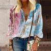 Damenhemd Knopf Lässig Druck Mode Rundhals Überschnittene Schulter Siebenärmeliges Hemd Top