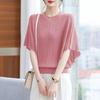 Einteiliges, gestricktes Fledermaus-T-Shirt aus Eisseide für Damen, lockere, große, dünne Kurzarm