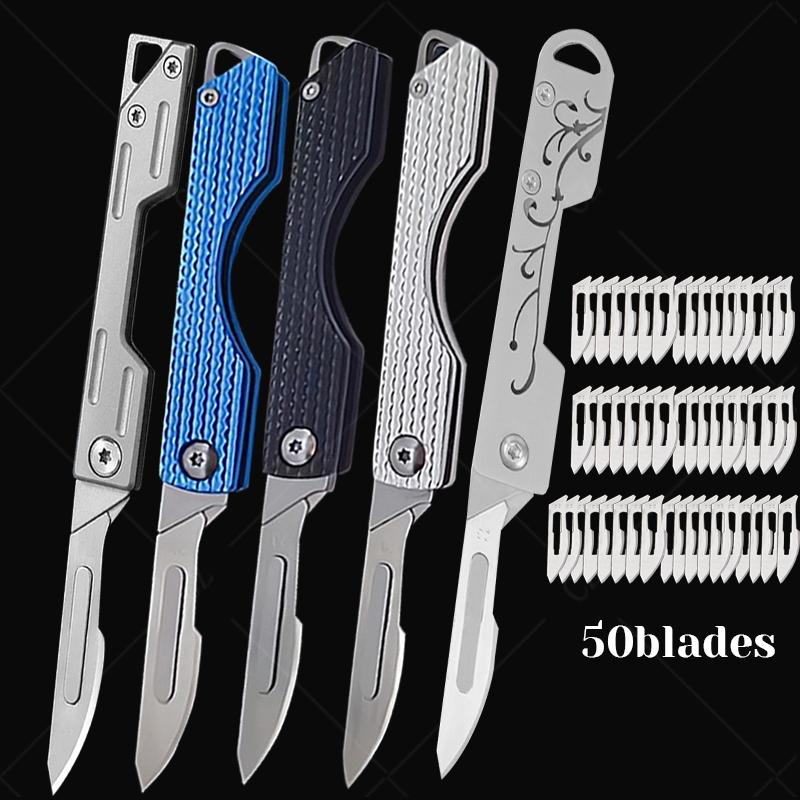 Stainless Steel Folding Knife Keychain Pocket Knife Surgical Mini Knife Replaceable Blades Sharp Multifunctional Knife Tool