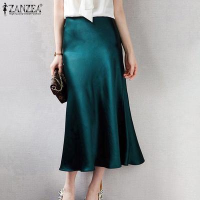 ZANZEA Lässiger, langer A-Linien-Rock für Damen mit elastischer Taille und Rücken
