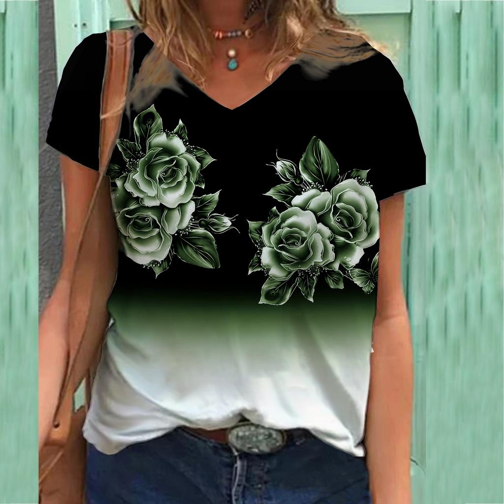 plus size XL-7XL Floral Themed Series 3D Printed T-shirt V-neck 3D Printed Women's Short Sleeved T-shirts Top