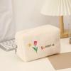 Süße Kosmetik-Aufbewahrungstasche mit Blumenstickereien, Kosmetiktasche, Federmäppchen, weiche Schminktasche aus Plüsch für Lippenstift und Schmuckbeutel