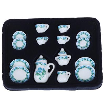 15 Stück 1/12 Keramik Tee Tassenset Puppenhaus Dekoration Simulation Mini KüchenzubehörKlee