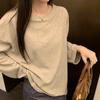 Französisches unregelmäßiges geschlitztes mittellanges gebürstetes langärmeliges lockeres T-Shirt für Damen im Herbst faul und pur lustvolles Oberteil