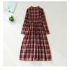 Herbst Plus Retro Taillenbetonendes Schlankmachendes Schnürkleid in Midi-Länge mit Karomuster für Damen Freizeitkleider