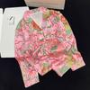 Pyjamas Damen Seiden-Langarmpyjamas Pyjama-Anzug mit Blumendruck Hochwertige Eisseide Kann Draußen Als Pyjama Für Zu Hause Getragen Werden