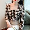 Women Blouses Shirts 2025 Spring Long Sleeve Women Blouse Shirt Square Collar Black Chiffon Blouse Shirt Women Tops J588