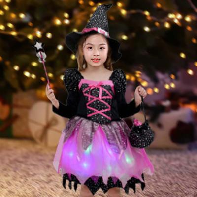 Kinder Mädchen Hexenkostüm Lange Ärmel Kleid Halloween Cosplay Größe 3-12 Mit Lichtern