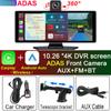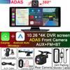 10.26" 4K Dash Cam ADAS Wireless Carplay & Android Auto Car Dvr 360 ° Rotation Dual Lens Dashboard Video Recorder 24h Park AUX