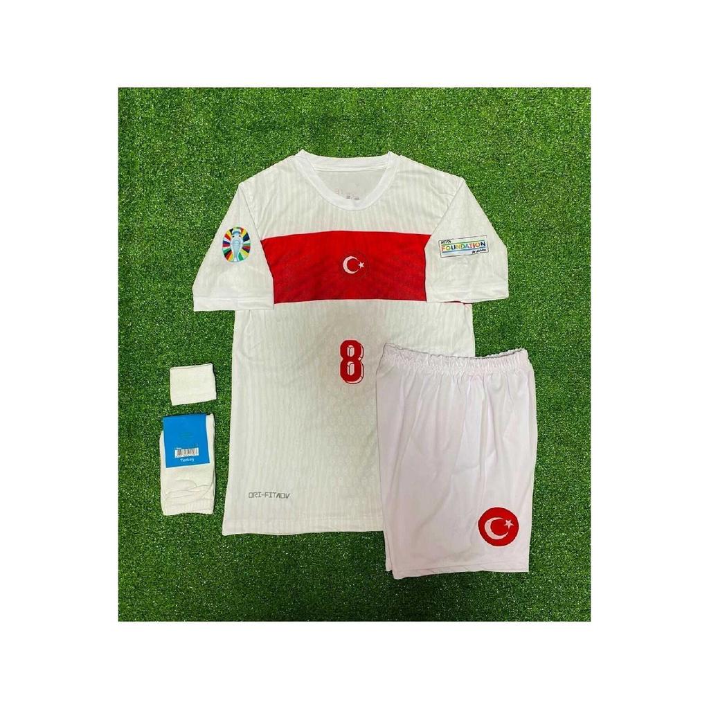 Türkei 2024 Nummer 8 Weißes Kindertrikot-Set mit 4 Stück (Euro 2024-Patch) Weiß