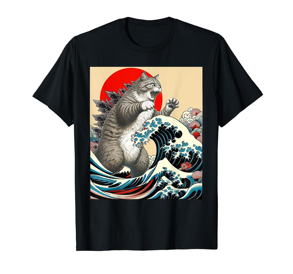 Catzilla Katze Japanische Kunst Lustige Katze T-Shirt
