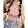 Camisole mit Pilzrand für Damen als Oberbekleidung für den Sommer, neues Design, kontrastfarbenes, gestricktes, gestreiftes Innenschichtoberteil