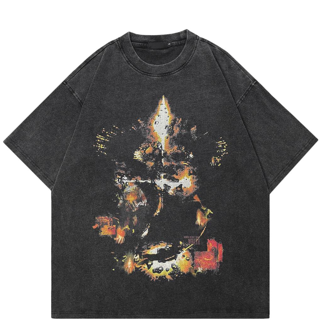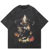 Streetwear Retro Future Warrior Grafik Gewaschenes Schwarzes Übergroßes Unisex T-Shirt