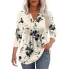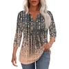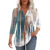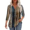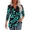 Modisches, lässiges T-Shirt mit plissiertem V-Ausschnitt und einfarbigen Siebenviertelärmeln für Damen