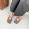 Johnature Flache Schuhe aus Rindsleder mit quadratischer Zehenpartie, Halbschuhe, echtes Leder, weiche Sohle, vielseitige Damenschuhe