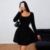 Damen Einfarbiges Tube-Top mit hoher Taille, schlankes sexy Langarm-Prinzessinnenkleid