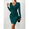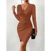 Frühling und Herbst Damen Einfarbig Flash Elegantes Kleid