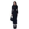 Damen Rundhals Langarm Schlank Elegant Langes Kleid