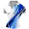 Lässiges T-Shirt mit Revers, modisches T-Shirt mit Reißverschluss für junge Herren, kurzärmeliges T-Shirt mit 3D-Tiermotiv-Musterdruck