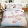 Kawaii Einhorn Buntes leuchtendes Einhorn-Kinderbettwäscheset für Mädchen Rosa Deluxe Bettbezug Bettwäscheset King Queen Bettbezug