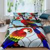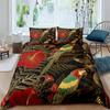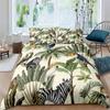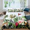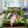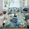 Papagei-Bettbezug-Set, schwarz-weiß gestreiftes Bettwäsche-Set, grüne Pflanze, Palmblätter, Bettbezug, Vogeltier, Polyester-Bettbezug