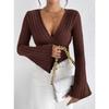 Damen Herbst- und Winter Rippstrick V-Ausschnitt Slim Langarm T-Shirt