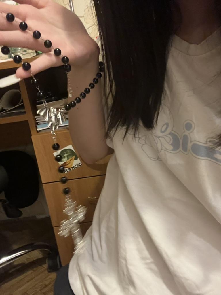 Y2K Perlenkreuz-Halskette – europäischer und amerikanischer Stil, schwarzes Fledermaus-Design, coole Schlüsselbeinkette