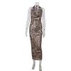 Damenmode Sexy V-Ausschnitt Neckholder Kleid Klassisches Paillettenkleid mit Leopardenmuster