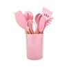 12 Teile/satz Silikon-Küchenutensilien mit Holzgriff und Aufbewahrungseimer, hochtemperaturbeständig und antihaftbeschichtet, Topfspatel, Löffel