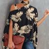Damen Sommer Bluse mit hängendem Hals und Fledermausärmeln, bedruckt