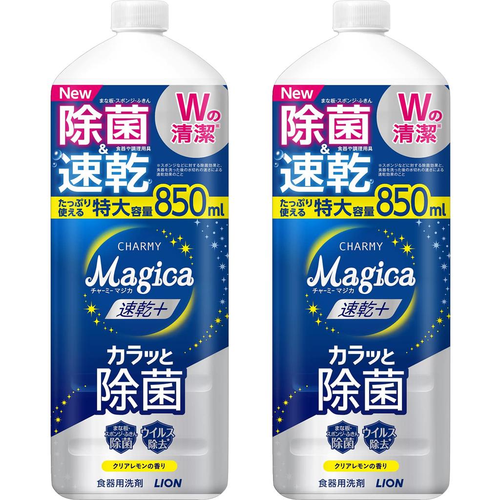 CHARMY Magica Charmy Magica Geschirrspülmittel, schnelltrocknend, schnelle Desinfektion, klarer Zitronenduft, große Nachfüllpackung, 850 ml x 2 [Großbestellung] +