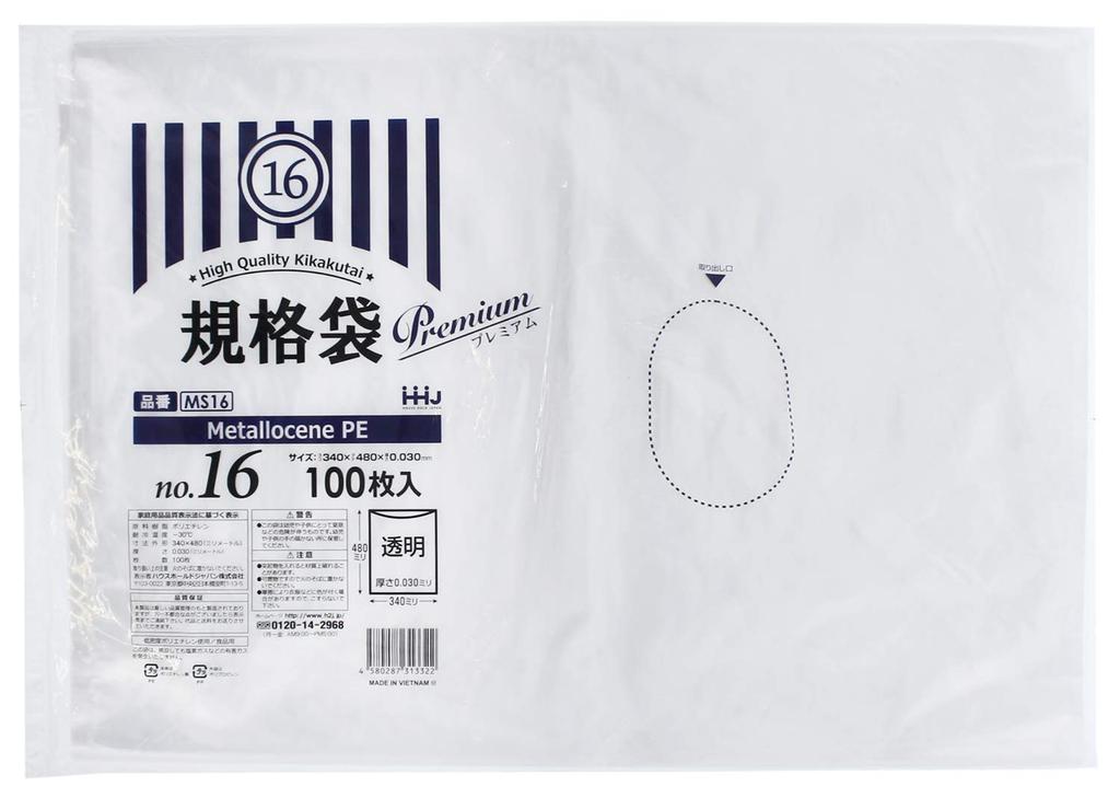 Haushalts-Japan-Hochfest-Plastiktüte 16 100 Stück Premium Hohe Festigkeit und Transparenz mit hochfestem Metallocen MS16 34 x 48 cm Nr.