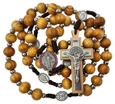 TALISMAN4U Olivenholz Rosenkranz Perlen katholische Halskette Benedikt Medaille Kreuz Jerusalem Kreuz Geschenk Holz St. Kasten,