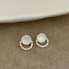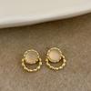 Leichter Luxus Runde Opal Doppel-Lagen Ohrstecker Damen Französisch Retro Elegant Mode Einzigartige Persönlichkeit Vielseitige Ohrringe