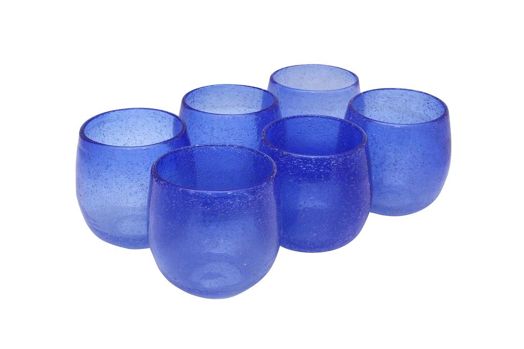 Minton Castle Enterprise New Instagrammable Tropical Style Bubbly Glass Blue Set of 6 [Commercial Set] (Large)