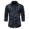 Herren Frühling und Herbst Plus Size Revers Langarm Volltonfarbe Button Down Jeanshemd