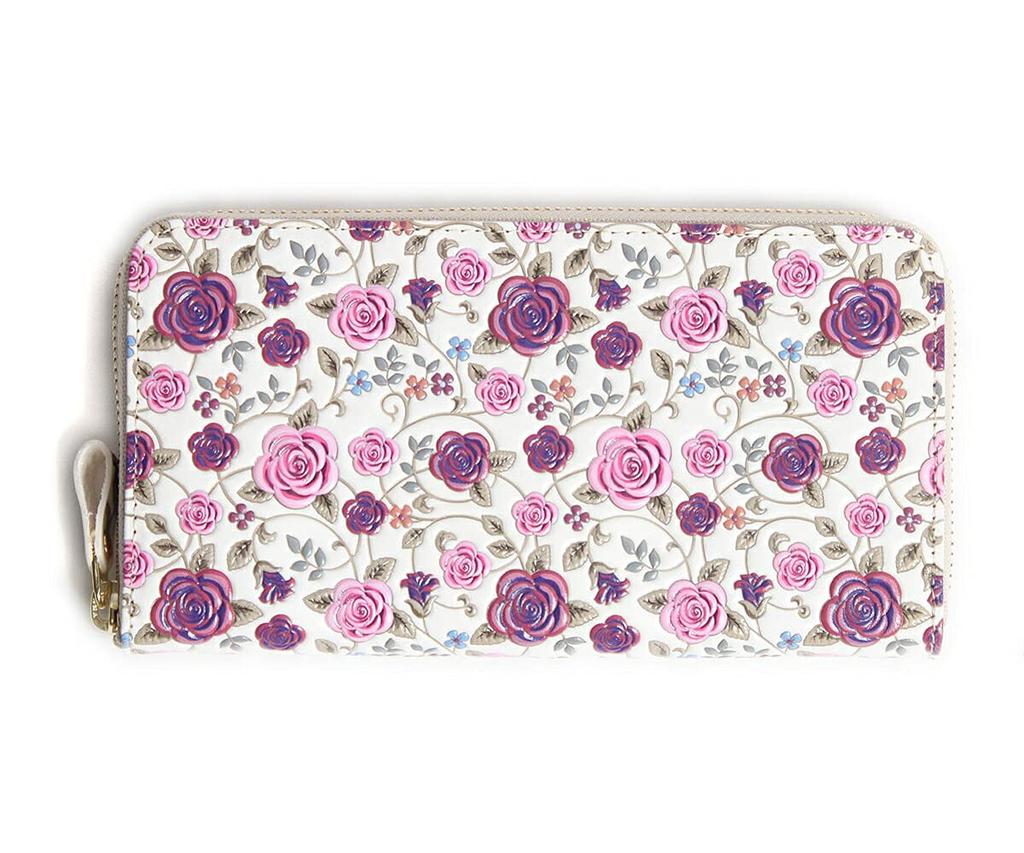 Yuzen-Färbung Lange Geldbörse Rosenmuster Geldbörse Rundum-Reißverschluss Echtes Leder Hergestellt in Japan Bordeaux [Asakusa Bunko]