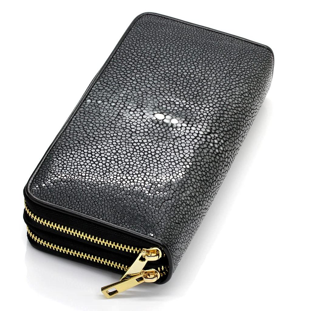 Stingray leather long large 40 card double round Garusha genuine leather [Levetta] wallet, capacity, slots, zipper, gold, Stingray, black, men's