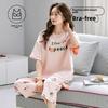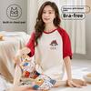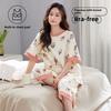 2025 Sommer Damen Pyjama Set mit Brustpolster Weich locker Kurzarm Oberteile und Caprihosen Zweiteilige Nachtwäsche Lingerie Homewear