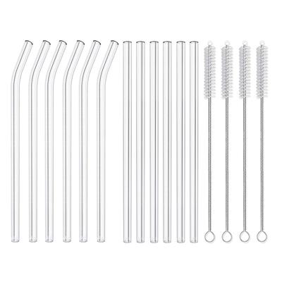 Tragbares Wiederverwendbares Transparentes Hitzebeständiges Trinkglas Strohhalm mit Reinigungsbürsten-Set