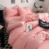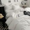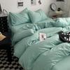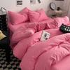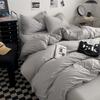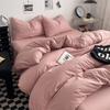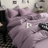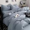 Bettwäsche-Set aus gewaschener Baumwolle 4-teilig Bettlaken-Set Einfarbig Bettbezug Paar Queen King Size Bett Steppdeckenbezug