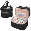 [Doppelschichtige große Kapazität] Diese Reisetragetasche ist mit einer doppelschichtigen Struktur ausgestattet. Die obere Schicht hat eine transparente PVC-Tasche für Haarnadeln und Accessoires. Es gibt auch eine Netztasche mit einem elastischen Band zur Aufbewahrung eines Lockenstabs oder Glätteisens. Die untere Ebene ist geräumig genug, um Ihren Haartrockner oder Ihr Stylinggerät zu verstauen, und 7 elastische Bänder halten Haarspangen und Accessoires sicher fest.