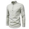 Baumwolle Leinen Herren Langarmhemden Sommer Einfarbig Stehkragen Casual Beach Style Übergroß