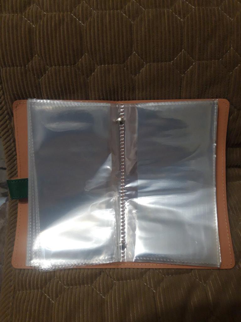Taschenbuch. Die Blätter sind dünn mit zwei Fächern. Es ergeben sich zwei Geldscheine pro Blatt, jeder in seinem eigenen Fach. Tatsächlich 50 Blätter.