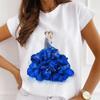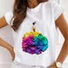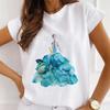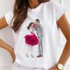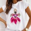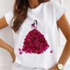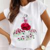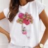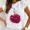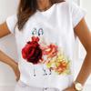 Mode Kreative 3D Rose Blume Grafik Frauen T-Shirt 90S Sommer Bluse Lose Kurzarm T-shirts Weiß Oansatz Damen Tops kleidung