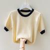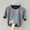 Damen Rundhals Eisseide T-Shirt Damen Sommer Farbblock Gehäkeltes T-Shirt Locker Übergröße Oberteil