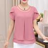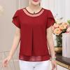 Damen T-Shirt Sommer Kurzarm Groß Chiffon Mode Rundhals Gaze Aushöhlen Patchwork Bluse Locker Mode Elegant Tops