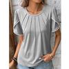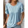 Damenmode, lässig, Sommer, Frühling, einfarbig, bedruckt, kurzärmelig, O-Ausschnitt, Blusen und Hemden
