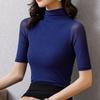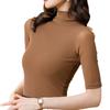 Halbrollkragenpullover Herbst Dünne Mittelärmelige Bottoming Shirt Damen Eng Anliegende Kurzarm Inner Slim Top