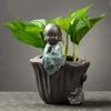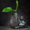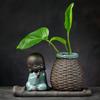 DXUIALOI Neu Chinesisch Kreativ Hydrokultur Pflanzen Chrysantheme Kupfer Geld Blumentopf Vase Zen Keramik Handwerk Heimdekoration
